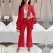 Elegant Two-piece Suit Set Consist of Ruffle Long Sleeve Blazer and Straight-cut Pants