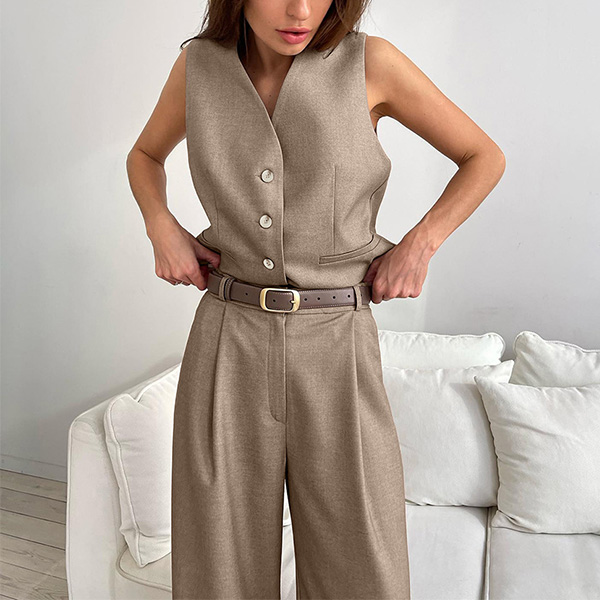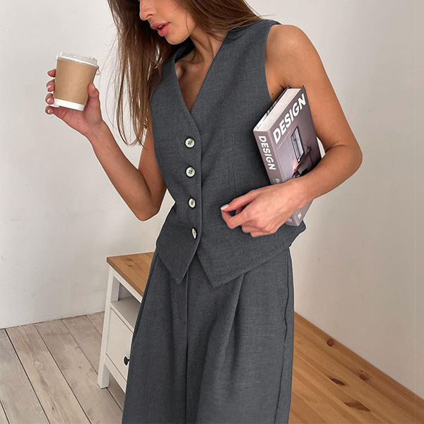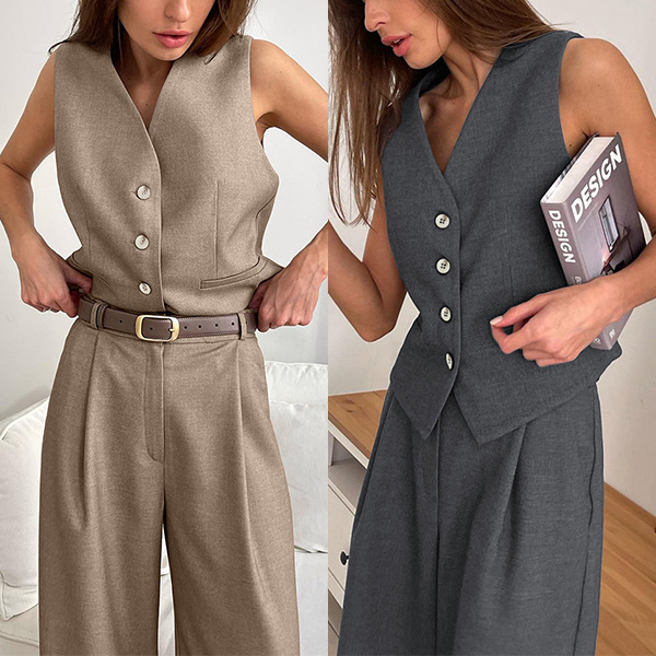 Elegant Two-piece Suit Set Consist of Sleeveless Vest and Straight-cut Pants