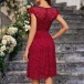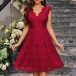 Elegant V-neck Cap Sleeve High-rise Jacquard Lace Dress