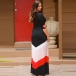 It has contrast color, half sleeve and high-waist design, classic and stylish. It can brighten someone's eyes. v-neck