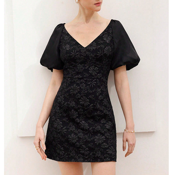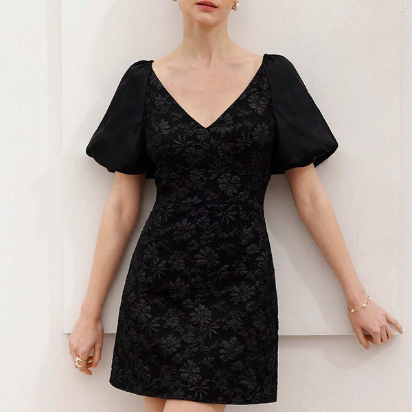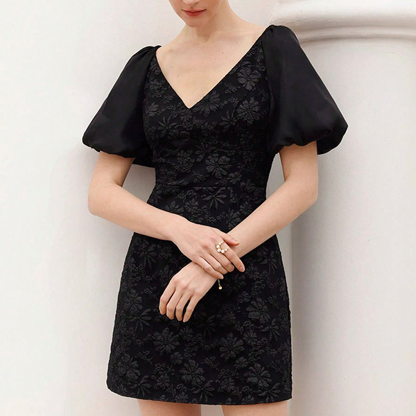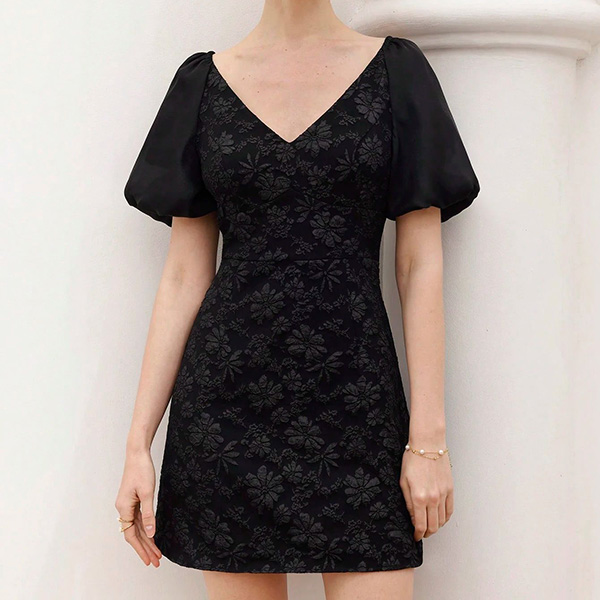 Elegant V-Neck Design and Stylish Puff Sleeves Dress