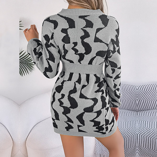 Crafted from a high-quality knitted fabric, this sweater dress offers a cozy and soft feel against your skin, perfect for cooler days or evenings. The contrast color pattern adds a unique and eye-catching element to the overall design, making you stand out from the crowd. Hope you like it.