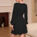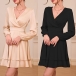 Elegant V-neck Long Sleeve High-rise Satin Dress