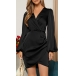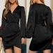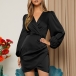 Elegant V-neck Long Sleeve Irregular Hemline Satin Dress