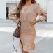 Elegant V-neck Long Sleeve Smocked Skirt Ruffled Hemline Mini Dress
