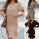 This dress exudes elegance and sophistication. The V-neckline adds a touch of allure, while the long sleeves provide coverage and a chic look. The smocked skirt creates a flattering and fitted silhouette, with ruffled hemline adds a feminine and playful touch, making this dress perfect for any special occasion.
