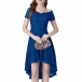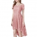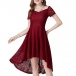 Elegant V-neck Short Sleeve High-low Hemline Lace Dress