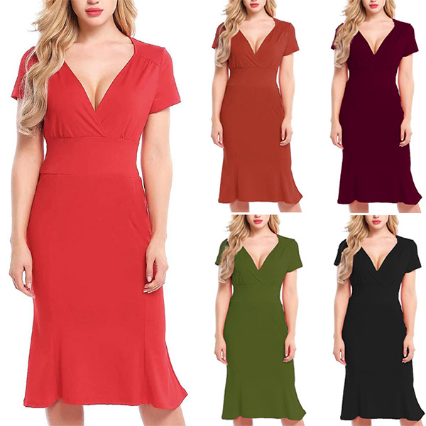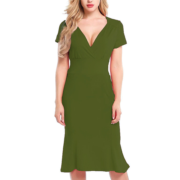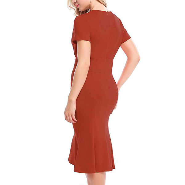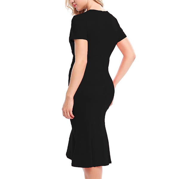Elegant V-neck Short Sleeve Ruffled Hemline Bodycon Dress