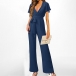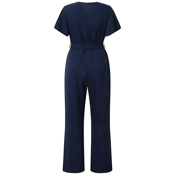 Elegant V-neck Short Sleeve Self-tie Straight-cut Jumpsuit
