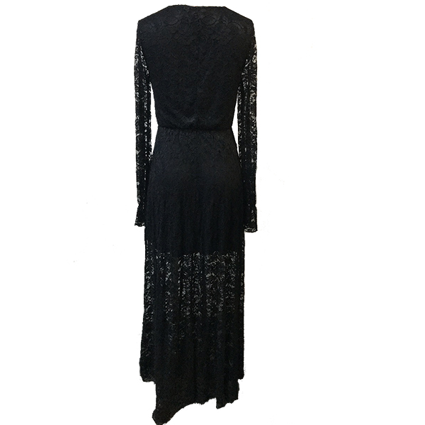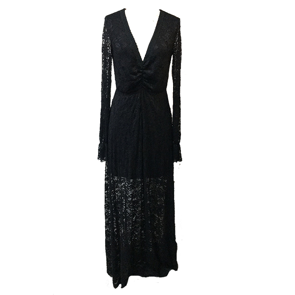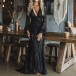 This black lace dress features graceful V-neck styling with dramatic trumpet sleeves and flowing maxi silhouette for contemporary romantic elegance. The lace fabric offers delicate textural beauty and refined romantic sophistication that showcases the beautiful balance between dramatic sleeve volume and flowing maxi elegance. Wanna have a try?