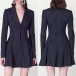 Elegant Vertical Stripe Printed Notch Lapel Long Sleeve Ruffle Hemline Suit Dress