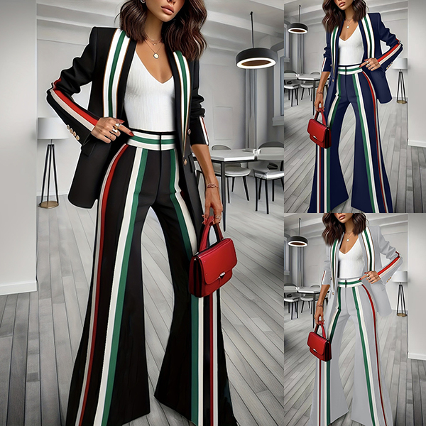 This Elegant Two-piece Set featuring a blazer and wide-leg pants. The vertical stripe pattern creates an elongating effect while adding architectural interest to both pieces. Perfect for professional environments, special occasions, or anytime you want to project refined confidence with contemporary flair. Wanna have a try?