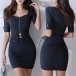 Elegant Vertical Striped Printed Two-piece Set Consist of Crop Shirt and Pencil Skirt