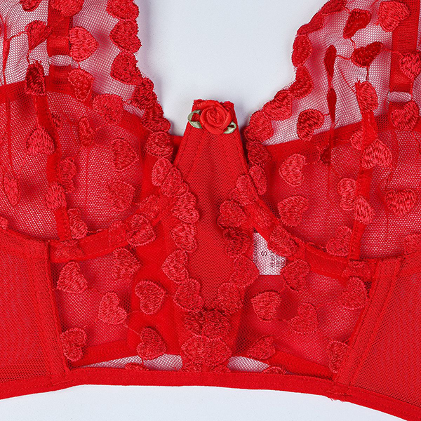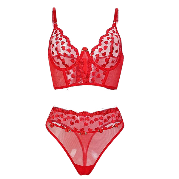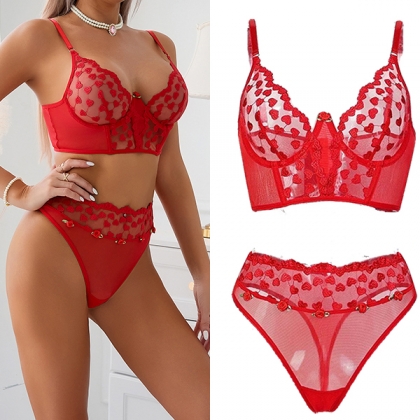 Embroidered Heart and Rose Two-Piece Lingerie Set