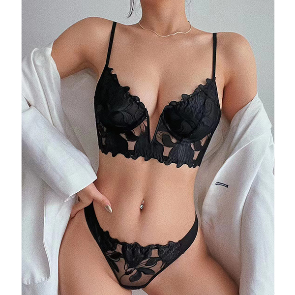 Embroidered Lace Lingerie Set with Ultra-Thin Bra and Matching Panties