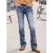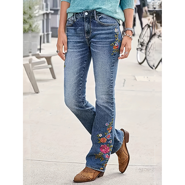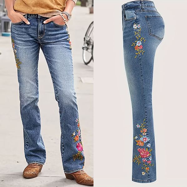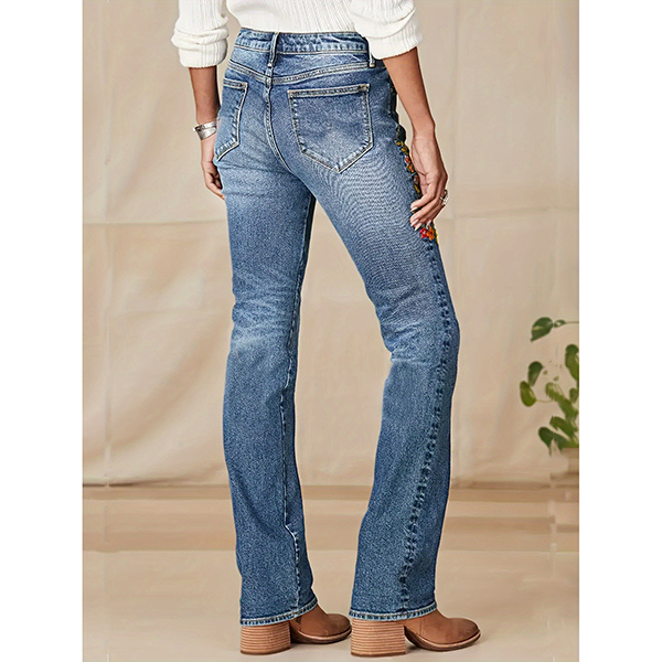 Embroidered Low Waist Slim Jeans featuring High-Stretch Elastic Waist