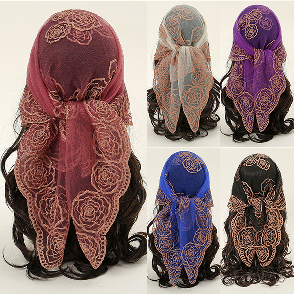 Embroidered Polyester Square Scarf