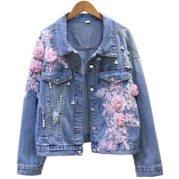Embroidered Three-Dimensional Flower Ripped Denim Short Jacket
