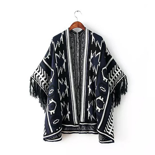 Take this ethnic style knitting cardigan to show your chic and unique style. It features ethnic style floral print pattern,cuff with tassels design and loose style,comfortable to wear. Your good partner,you deserve to have it.