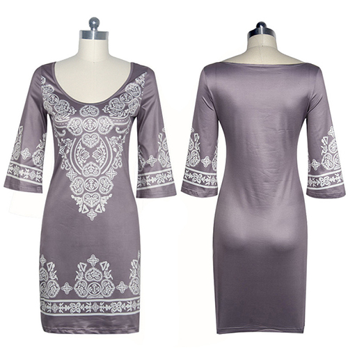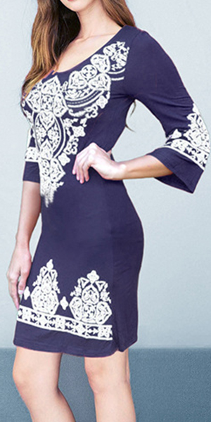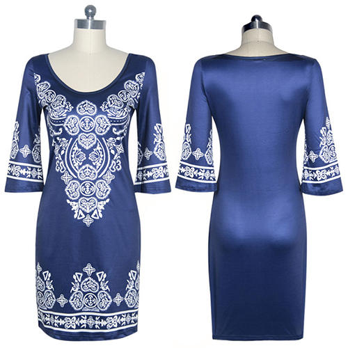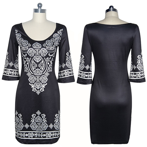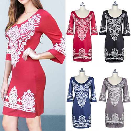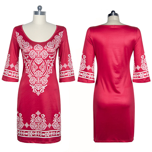 This dress features ethnic style printed pattern,chic and eye-catching. Outfitted with 3/4 sleeve,