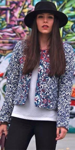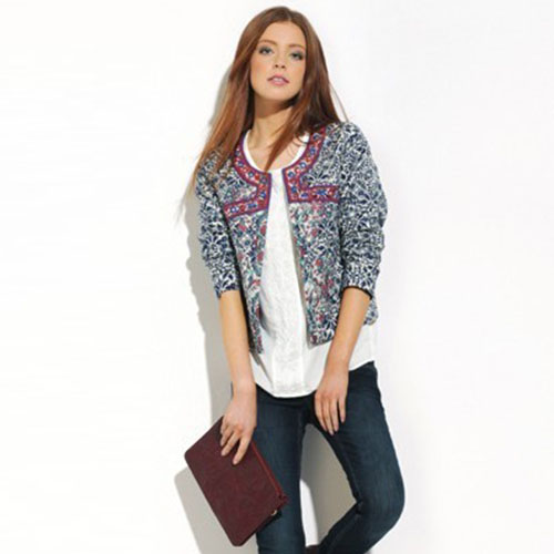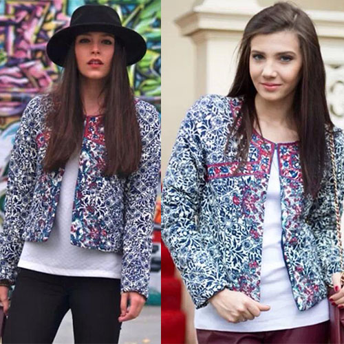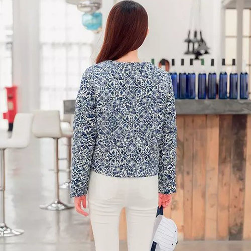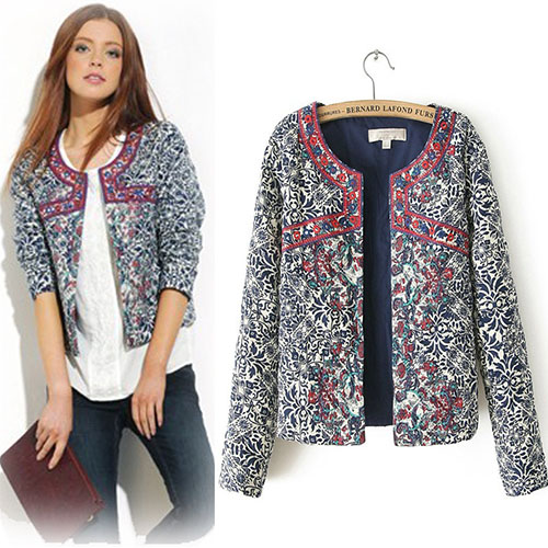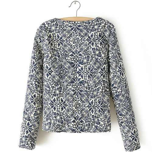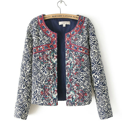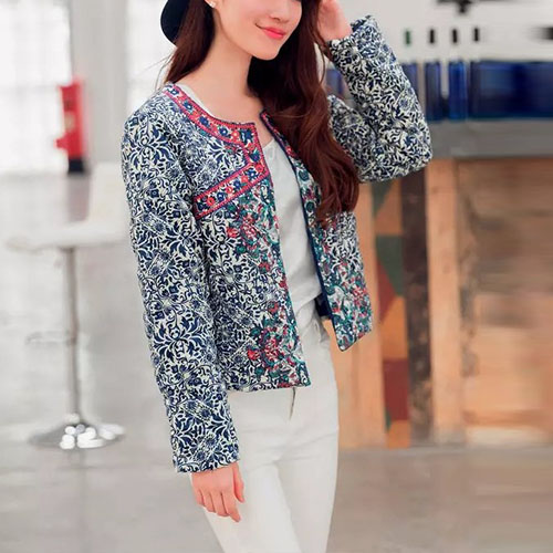 This padded coat features ethnic style Blue and White Porcelain printed,with delicate embroidered process,