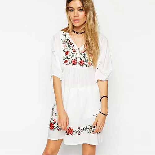 This dress features ethnic style embroidery design,exquisite and stylish.
