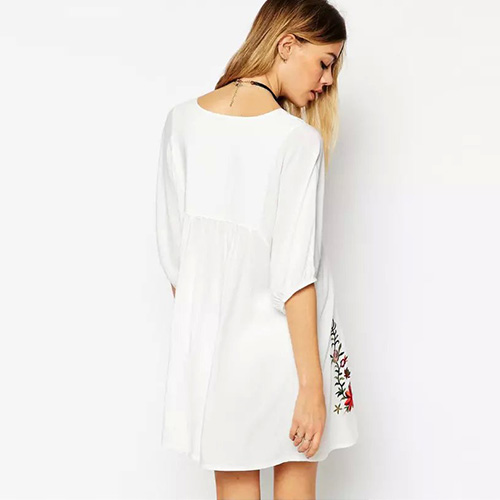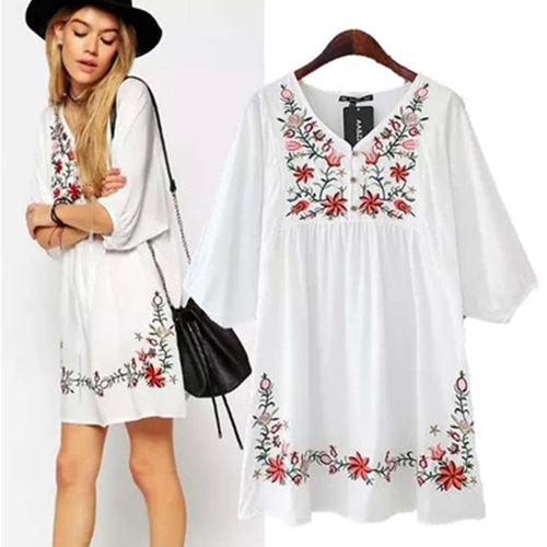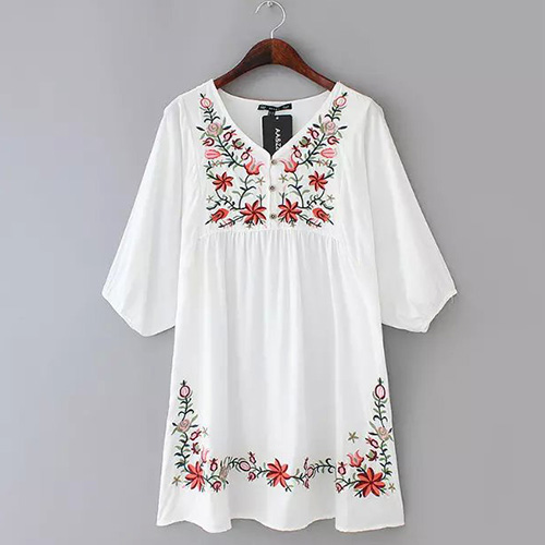 Ethnic Style Embroidery Half Sleeve Loose Dress