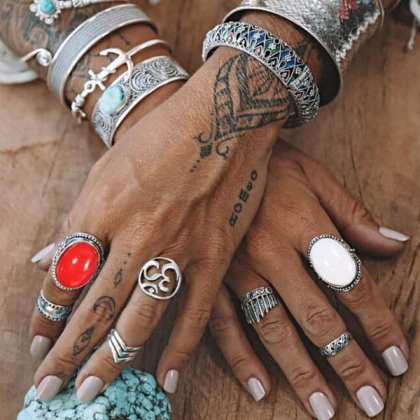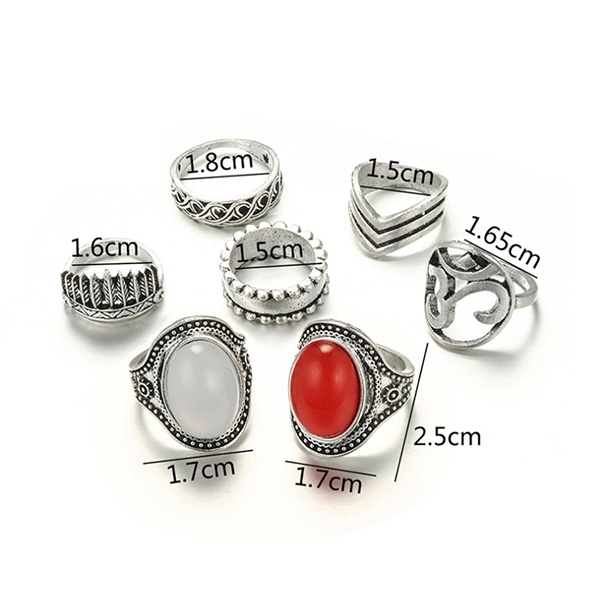 this ring set. The faux gem inlaid design will enhance its charm. It consists of 7 pieces different rings,