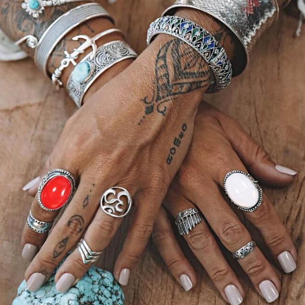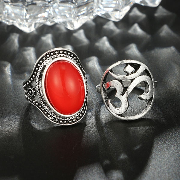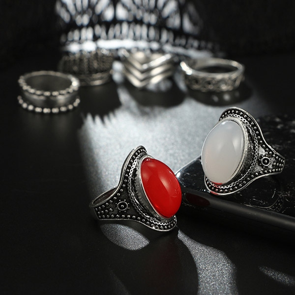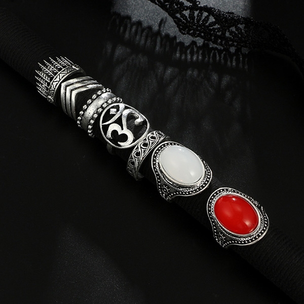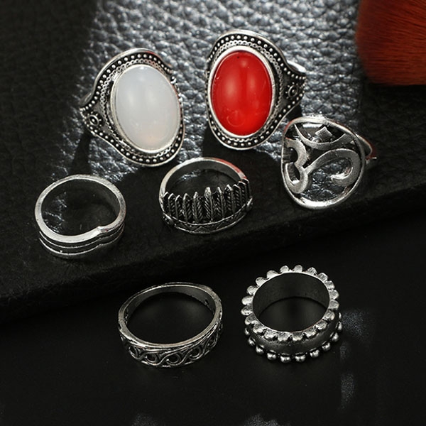 Ethnic Style Faux Gem Inlaid Ring Set 7 pcs/Set