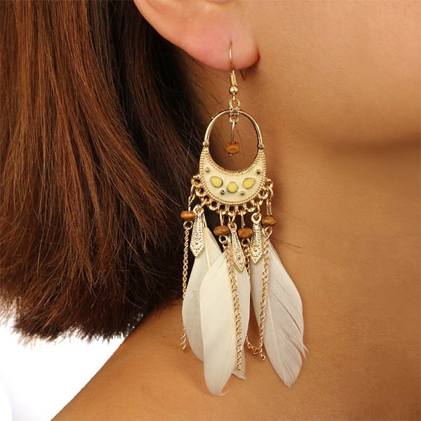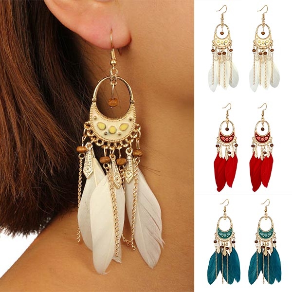 this pair of earrings. The feather pendant design makes it look so chic and unique. Add them to your