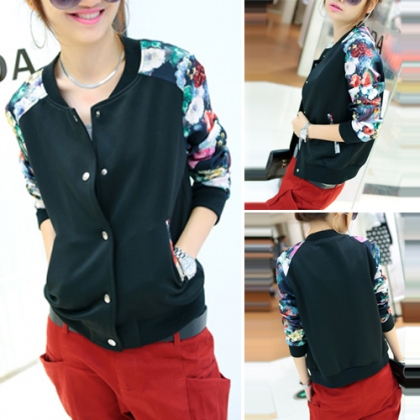 It features ethnic style floral print,with long sleeve,stand collar and comfortable fabric.