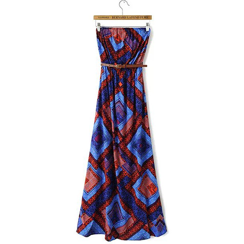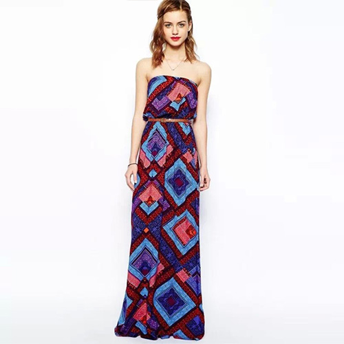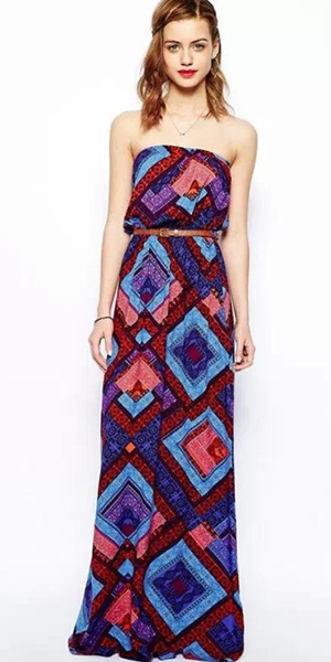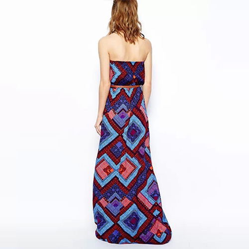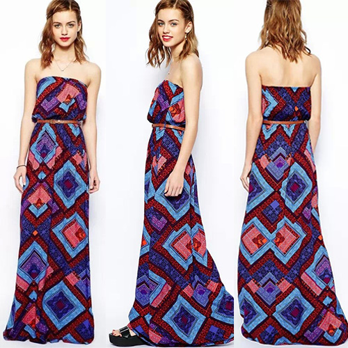 This dress features ethnic style floral print pattern,chic and stylish. Strapless style,
