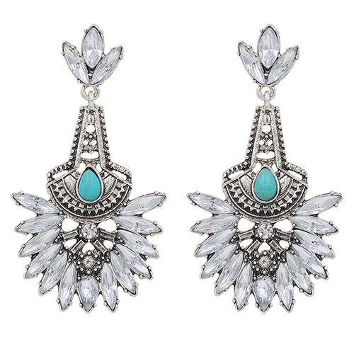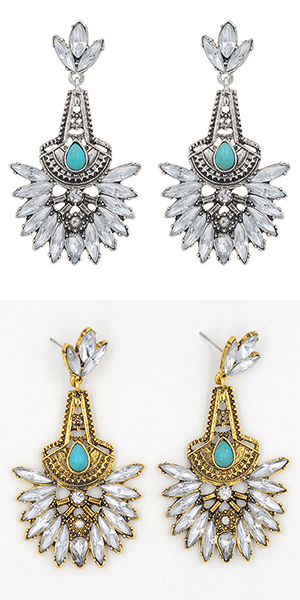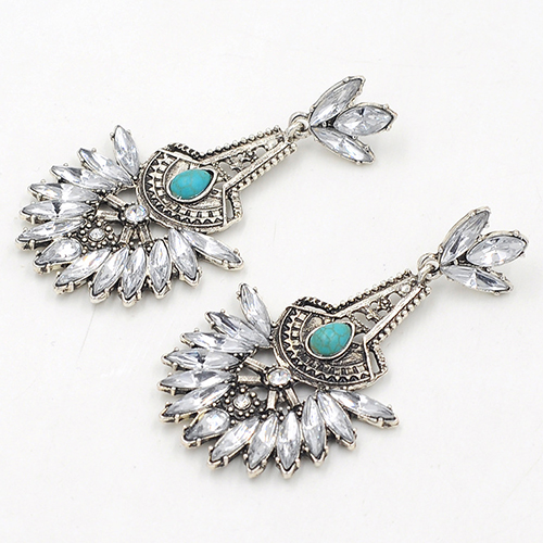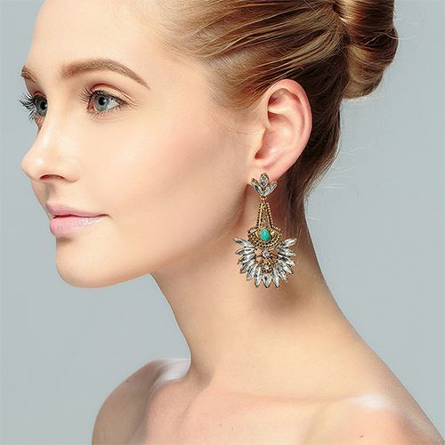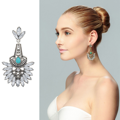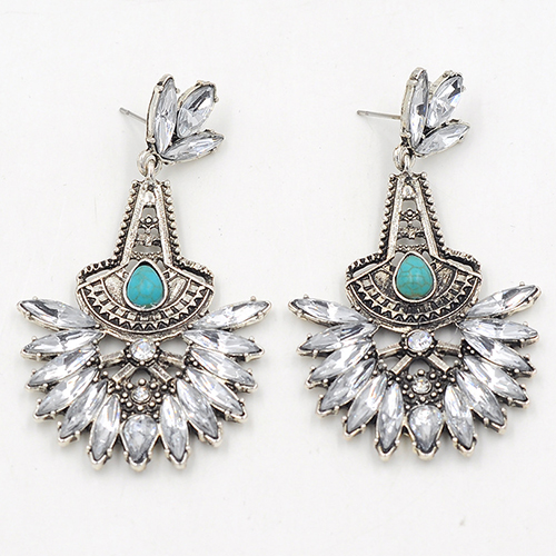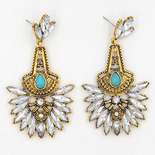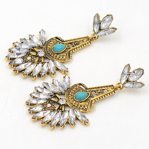 Drop-shaped rhinestone inlaid in this pair of flower-shaped earrings, this originally ethic