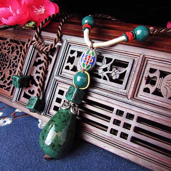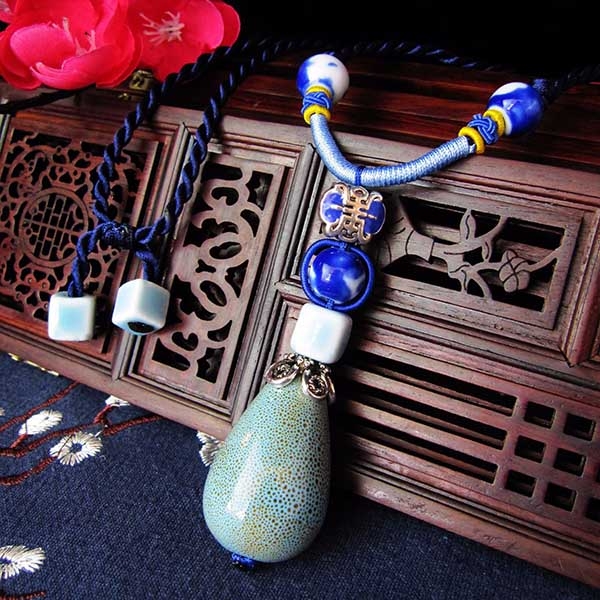 Ethnic Style Imitation Ceramic Pendant Sweater Necklace