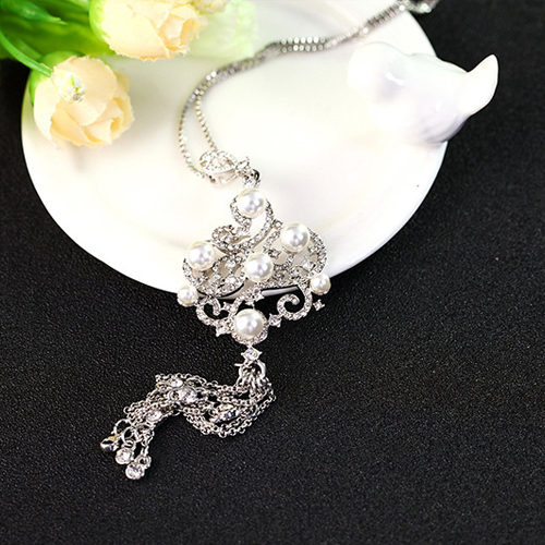 Ethnic Style Rhinestone Pearl Chinese Knot Pendant Necklace