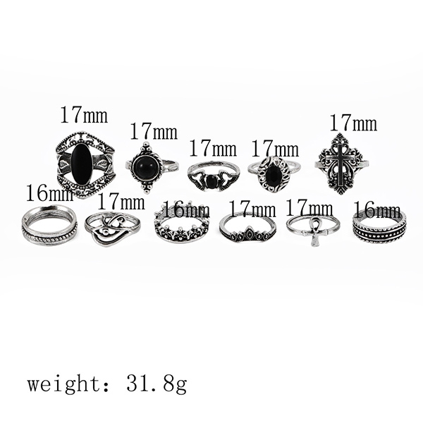 Ethnic Style Silver-tone Ring Set 11 pcs/Set