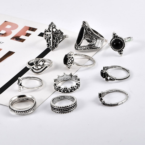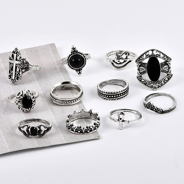 This ring set consists of 11 pieces different rings,boasting a classic yet stylish silver tone,