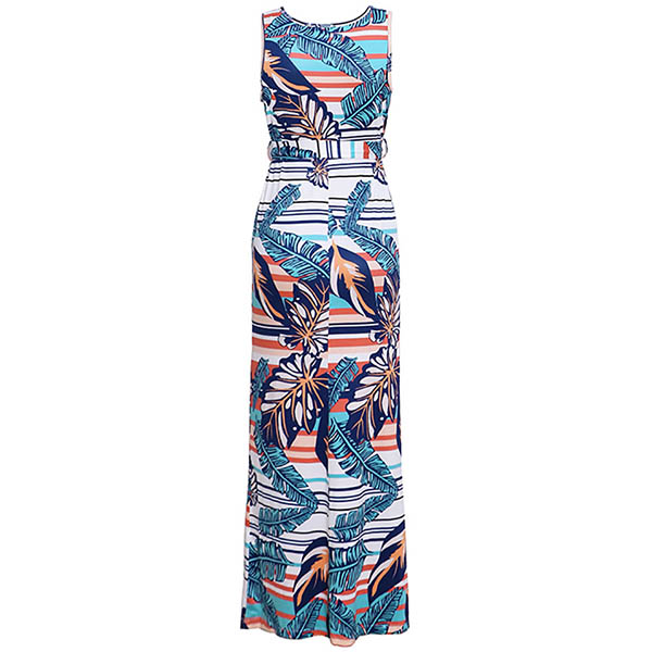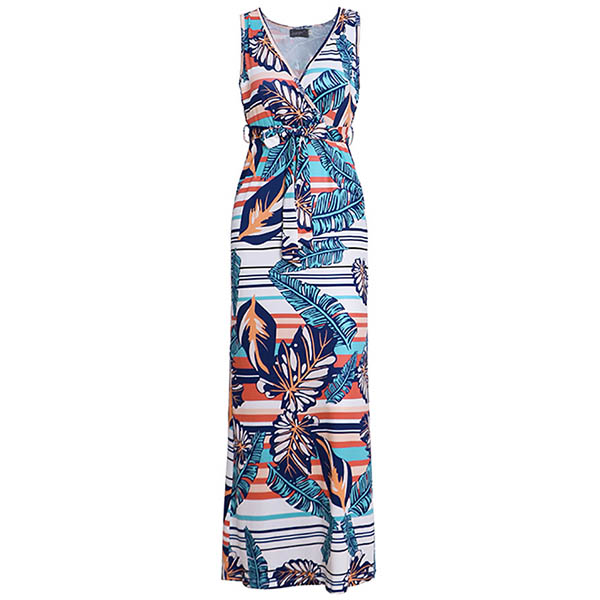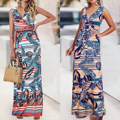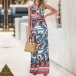 No matter when and where you are,you can easily be a pleasant sight to draw more attention. Its chic and eye-catching printed details make this piece look more attractive. Finished with sleeveless,v-neck and a maxi length,this dress also can portray your slender figure. So why not update your wardrobe with this wonderful dress?