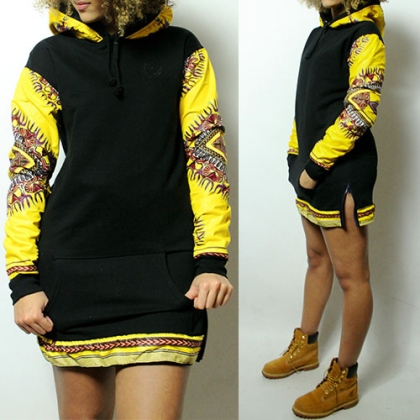 Today, you can achieve your unique and chic look via this sweatshirt dress. Ethnic style, accompanied