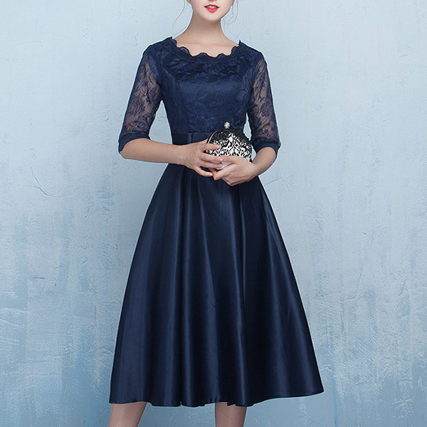 Evening dress new mid-length dress fashion mid-sleeve dress