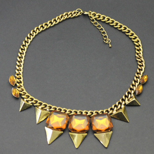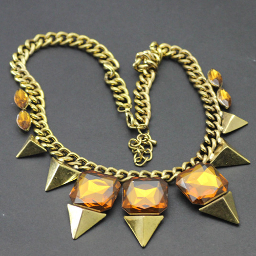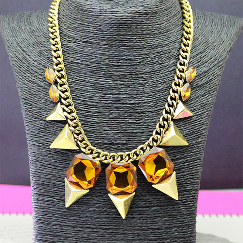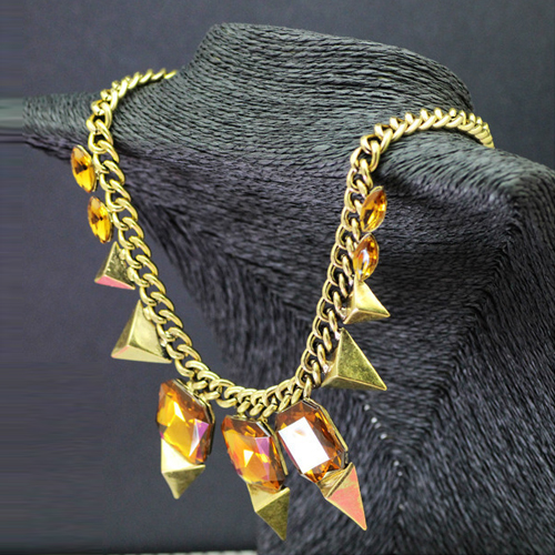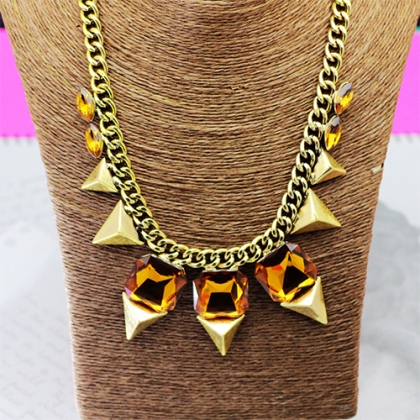 Exaggerated Style Gold-tone Rhinestone Necklace