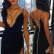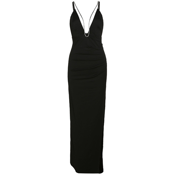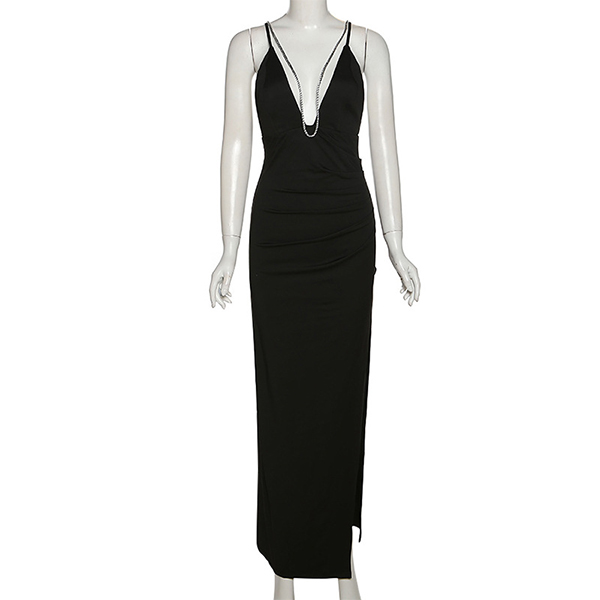 Sexy backless dress in soft material, Deep V-neck, cutout at back with lace-up chain design, high slit design, this dress looks so distinctive and sultry. A perfect dress for next party!