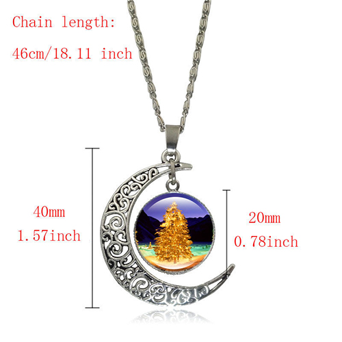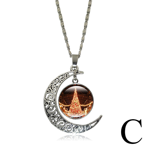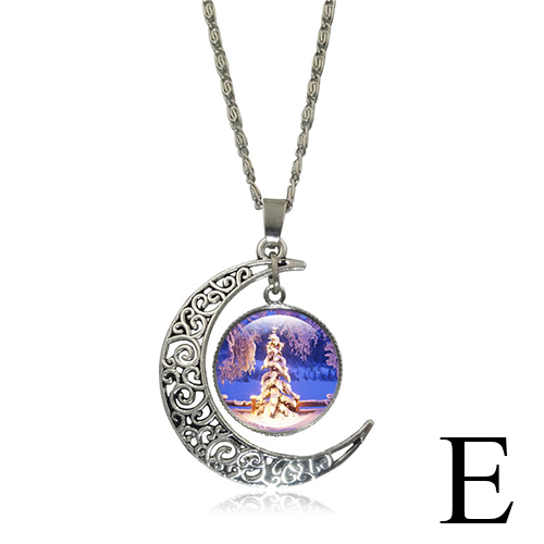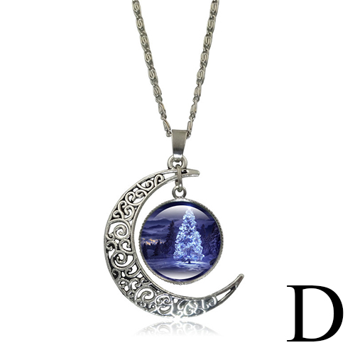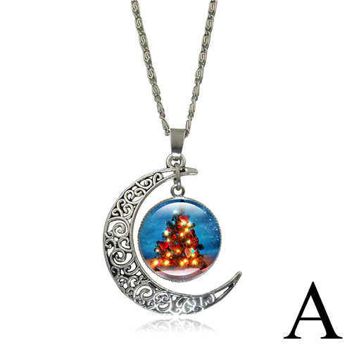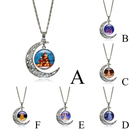 Faashion Hollow Out Moon Christmas Tree Pendant Sweater Necklace