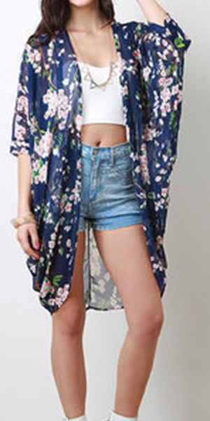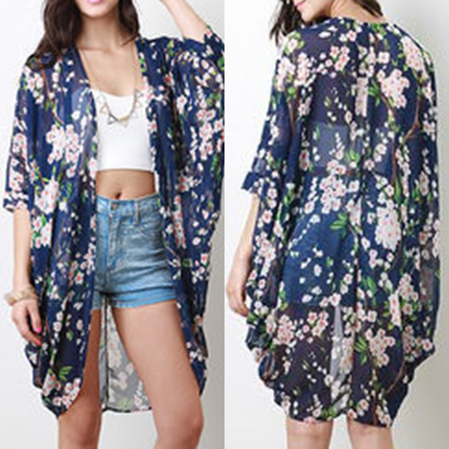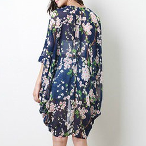 vibrant floral print,with 3/4 sleeve and breezy chiffon material,cozy and cool. Perfect