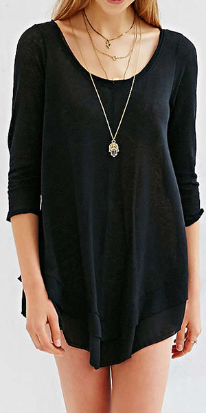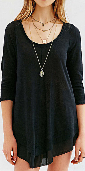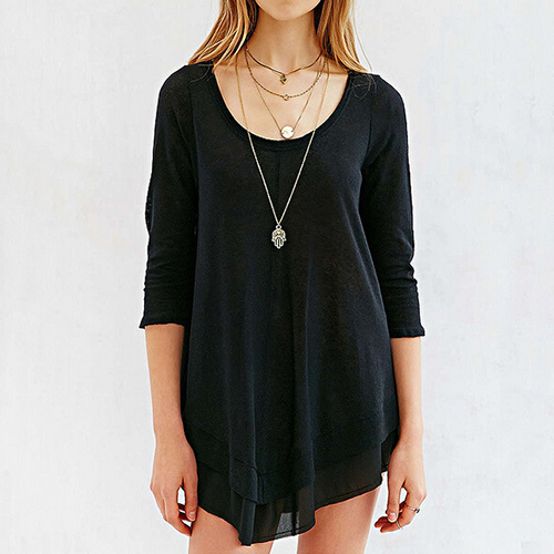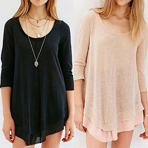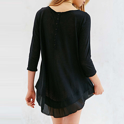 Solid color style,outfitted with 3/4 sleeve,round neck and chiffon spliced hem design,chic