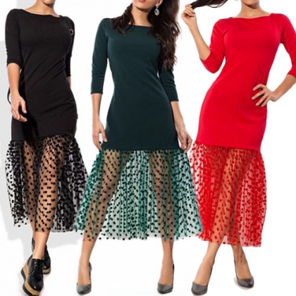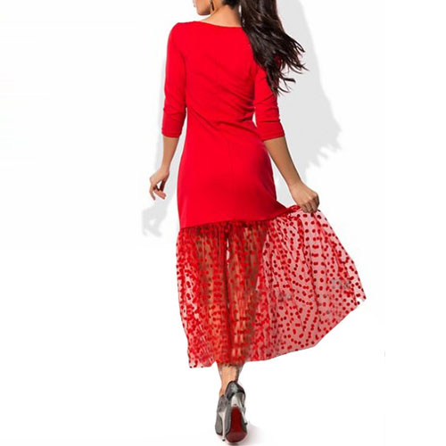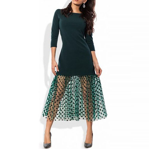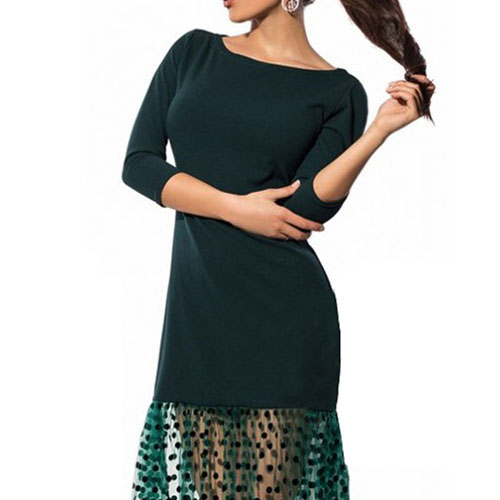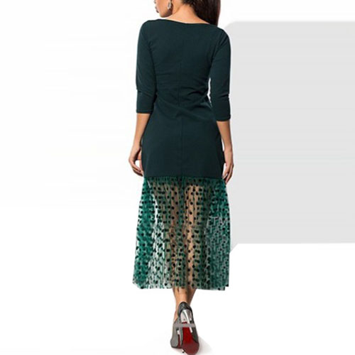 You'd be surprised by just how much this dress can do for you. Designed 3/4 sleeve,round neck and gauze spliced hem,