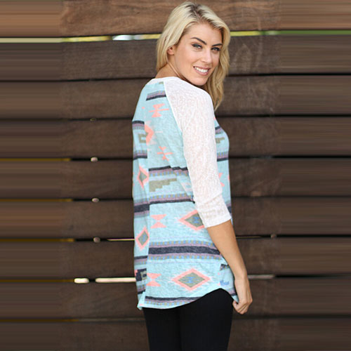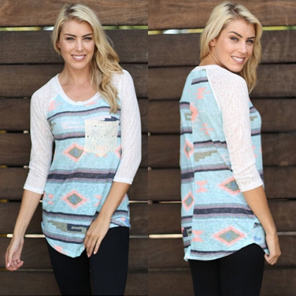 Fashion 3/4 Sleeve Round Neck Printed T-shirt