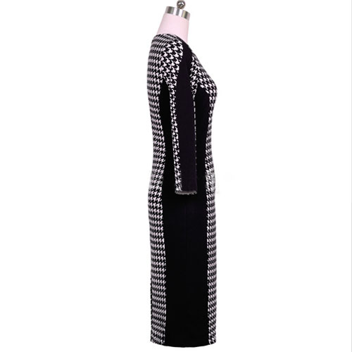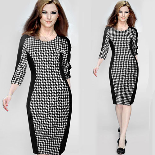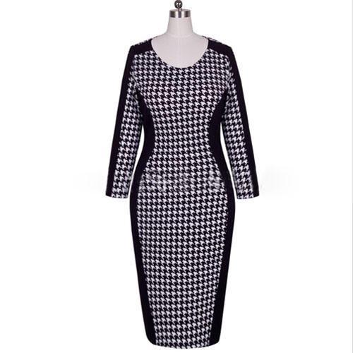 Combination of Houndstooth element,stylish and chic. 3/4 sleeve,round neck