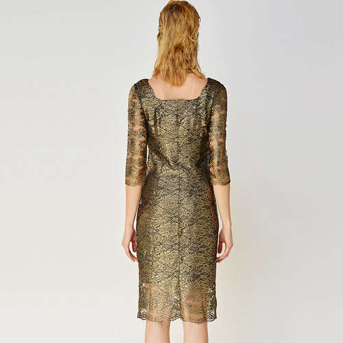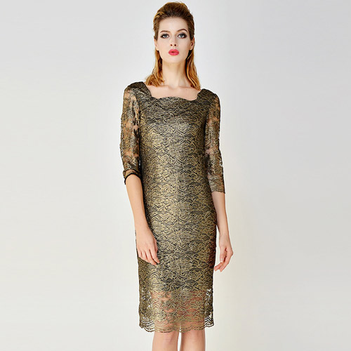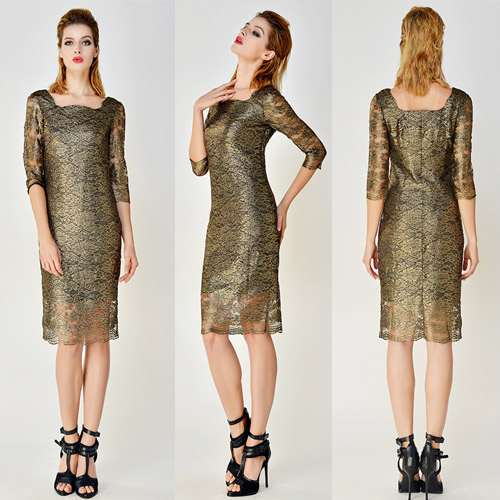 This dress features gold color,elegant,noble,classical and dignified. 3/4 sleeve and slim fit design.