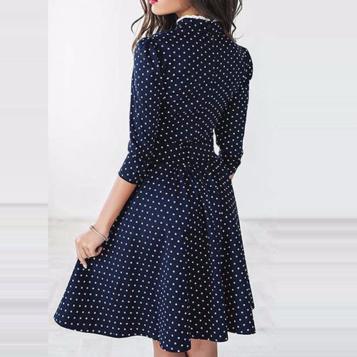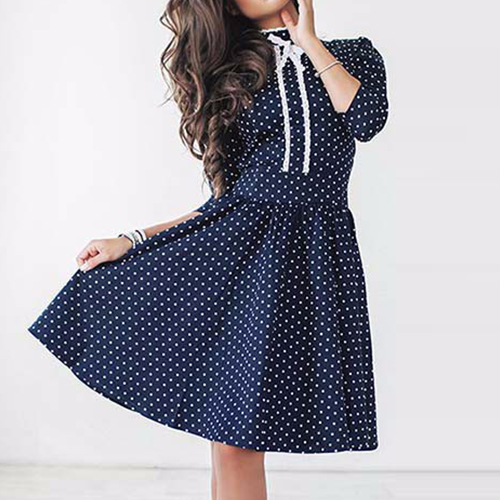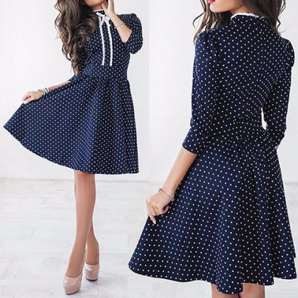 with this exquisite dress!Dots printed style,outfitted with 3/4 sleeve and stand collar,this dress can easily update your style.